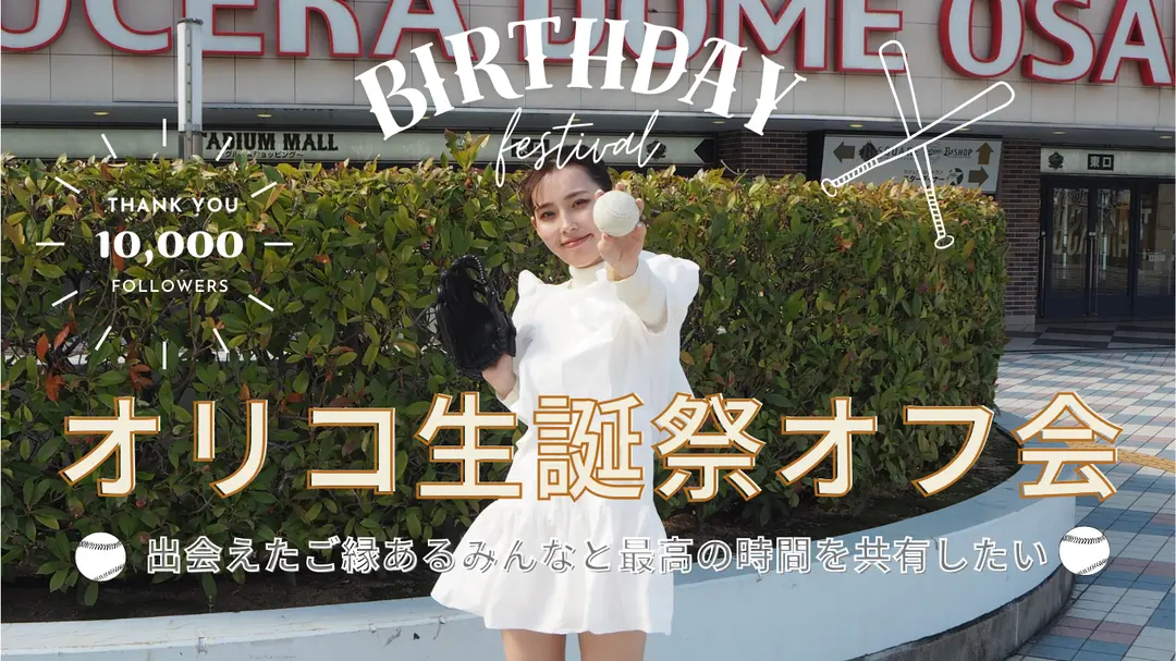 ただ野球観戦が好き、というきっかけから始めたSNS。それを楽しんでくださる方に出会えたことで、 ずっと目標にしていたTikTok1万人フォロワーを達成することができました^^! その記念とオリコの誕生祭を兼ねて、今回オフ会を実施させていただきます。 インタビューを通じて出会えた方や、投稿を楽しんでくださっている方が増えたことで直接お会いしてもっと知りたい、 このご縁を大切にしたいと思っております。みんなで最高の時間を共有しましょう!