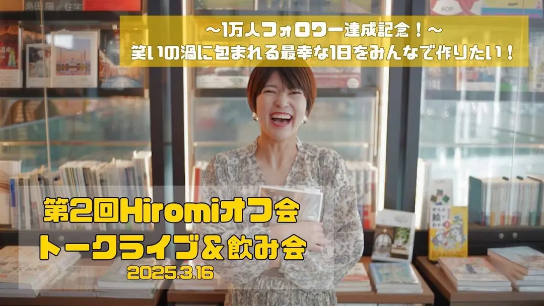 第2回Hiromiオフ会〜スペシャルトークライブ&オフ会飲み会〜を2025/3/16に開催します! この日までのフォロワー1万人達成は、 私にとってもチャレンジですが、せっかくならみんなでリアルに集まってお祝いをしたい!日頃のお礼を伝えたい!そんな想いで開催するオフ会開催へ向けた資金調達プロジェクト。