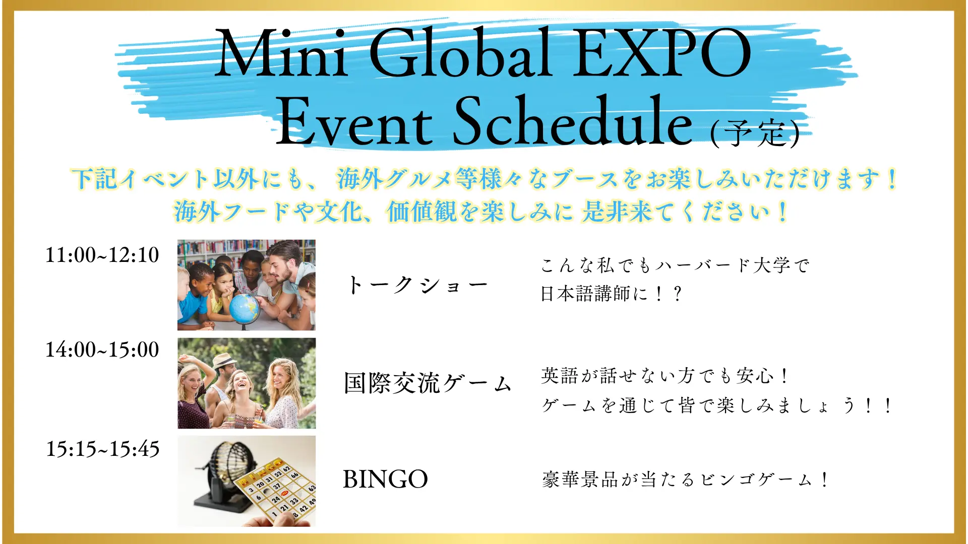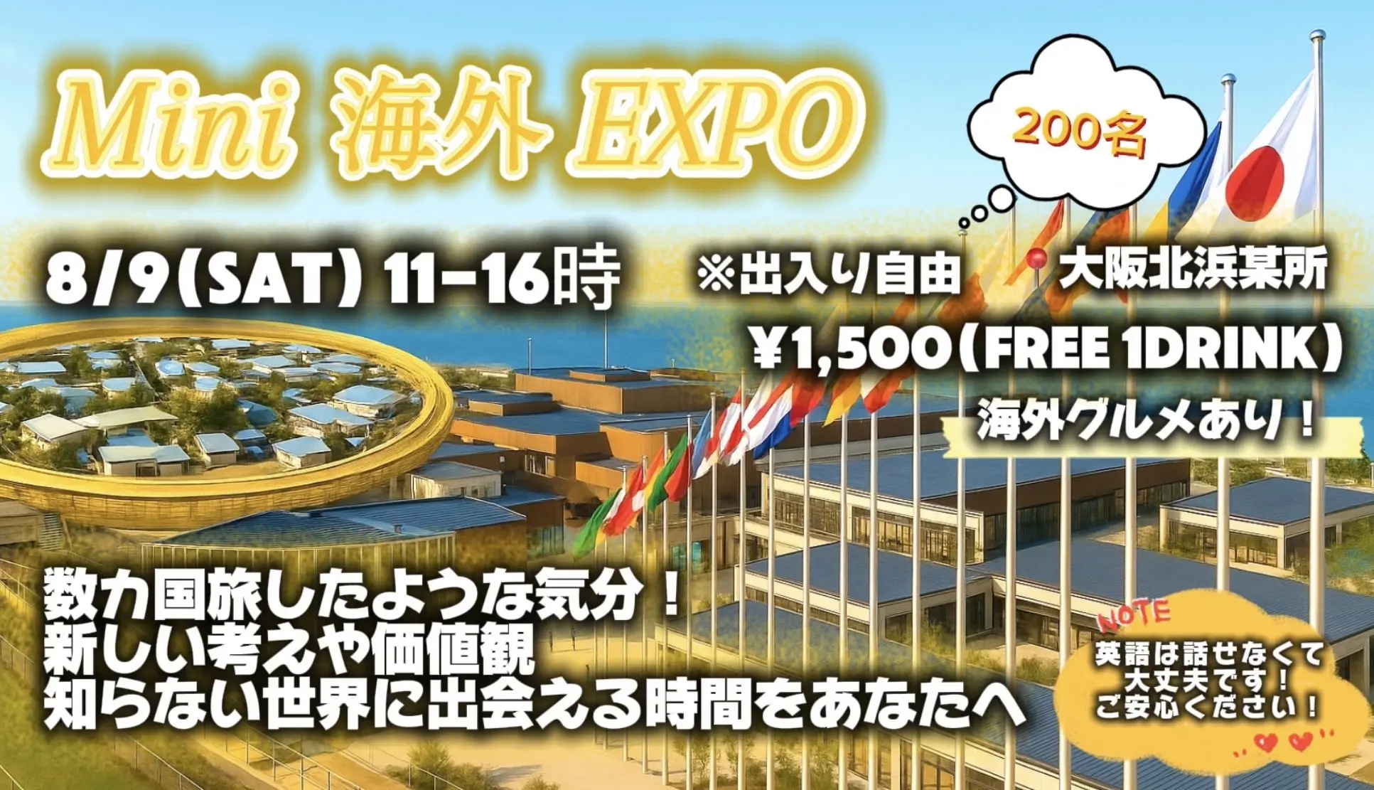 【Mini海外EXPO入場無料】、【定期開催中の国際交流イベント1回参加無料】