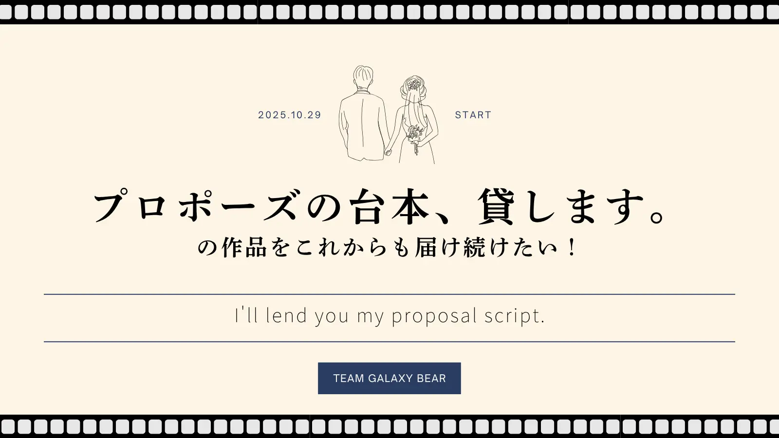 ショートドラマ「プロポーズの台本、貸します。」を、これからも届け続けたい。 プロポーズっていいな、結婚っていいなと感じるきっかけをこのショートドラマから! そんな思いでプロジェクトを立ち上げました!